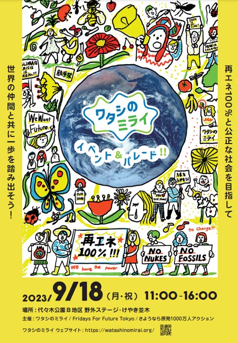 The newly-formed network “Watashi no Mirai,” “Fridays For Future Tokyo,” which has been tackling climate issues since 2019, and the “Goodbye Nuclear Power 10 Million Action,” spearheaded by noted personalities such as Ryuichi Sakamoto, have banded together. Their unified mission aims to promote a fair society, one that is deeply rooted in environmental consciousness.