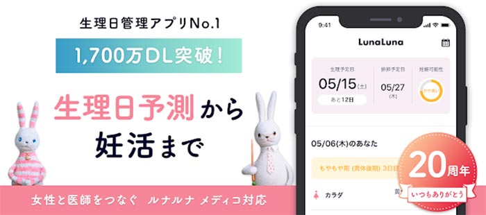 Luna Luna is a well-known fertility app in Japan with over 17 million downloads. The app predicts your ovulation date with their original algorithm, which analyzed data they have gathered over 15 years.