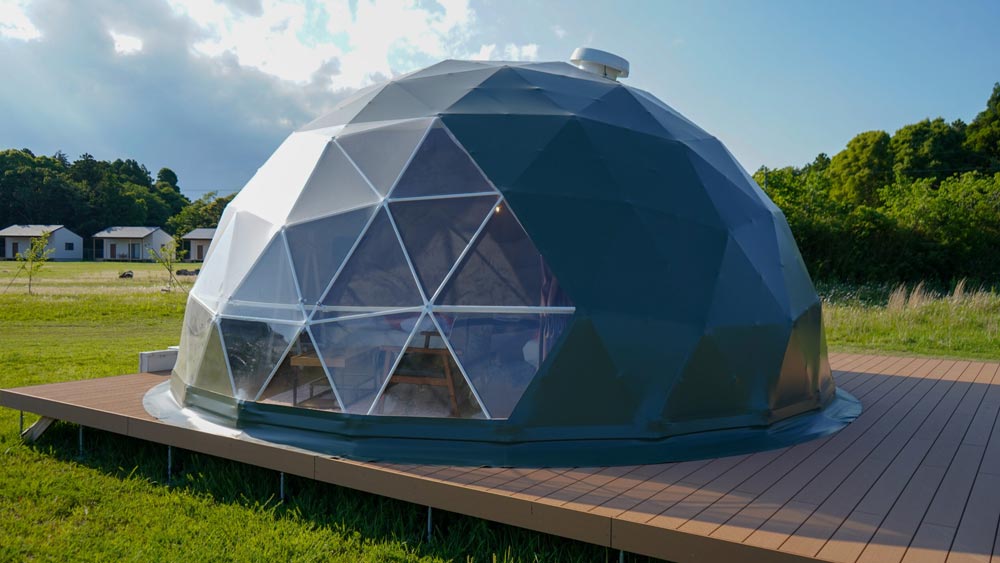 The accommodation offers pet-friendly cottages and several types of tents, including the popular dome tents. All rooms are equipped with beds, air conditioners, and refrigerators.