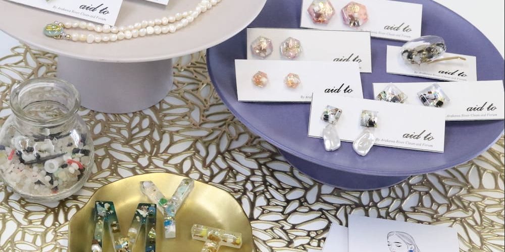 The Aid To’s accessories are made of microplastics collected through such activities in the Arakawa River which would have otherwise washed out into the ocean.