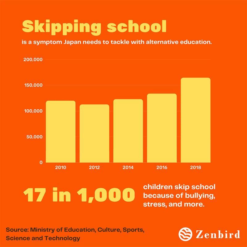 However, in modern Japanese society, the increasing truancy rate is a consistent issue. The number of students absent for more than 30 days has increased for seven consecutive years. In 2019, more than 180,000 elementary and junior high school students in Japan refused to go to school. As mentioned above, most elementary and junior high school students spend most of the day in their classroom. Thus children who feel uncomfortable there lack the motivation to attend school itself. Although the importance of education and acquiring sociability doesn’t change for any of these children, the current educational system seems to lack the capability to handle the problem promptly, resulting in educational inequality.