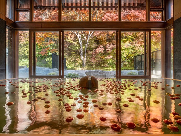This autumn, Hoshino Onsen Tombo-no-Yu in Karuizawa will be bringing back their special “Apple Bath” campaign on October 17-20 and November 7-10 this year. It will feature 1,000 non-standard apples, those deemed unsuitable for sale due to blemishes or imperfections, floating in the men’s and women’s indoor baths. This initiative not only offers a novel bathing experience but also acts as an opportunity to start conversations about food loss.