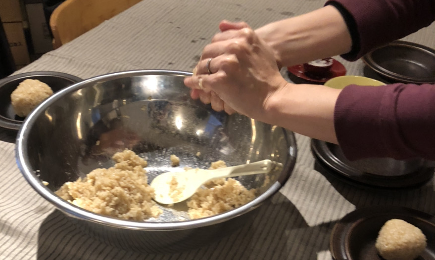 Tsujino says that food culture is too precious to lose. “I am saddened by the fact Japanese people have been neglecting rice, resulting in less rice fields and farmers.” His ambition is to preserve the culture, therefore, having all of us at the workshop sit down and eat rice balls was all he needed to do to convey his dreams. He does not want us to teach our children, but rather, show them by making rice balls together and eating them the way our ancestors ate theirs. When our children are on their own and potentially feeling unwell or otherwise unbalanced, they hopefully will have the wisdom and skills, not to mention enough rice, to make their own rice balls. In the meantime, passing along the knowledge that has been inherited may be essential to ensure a healthy existence for future generations.