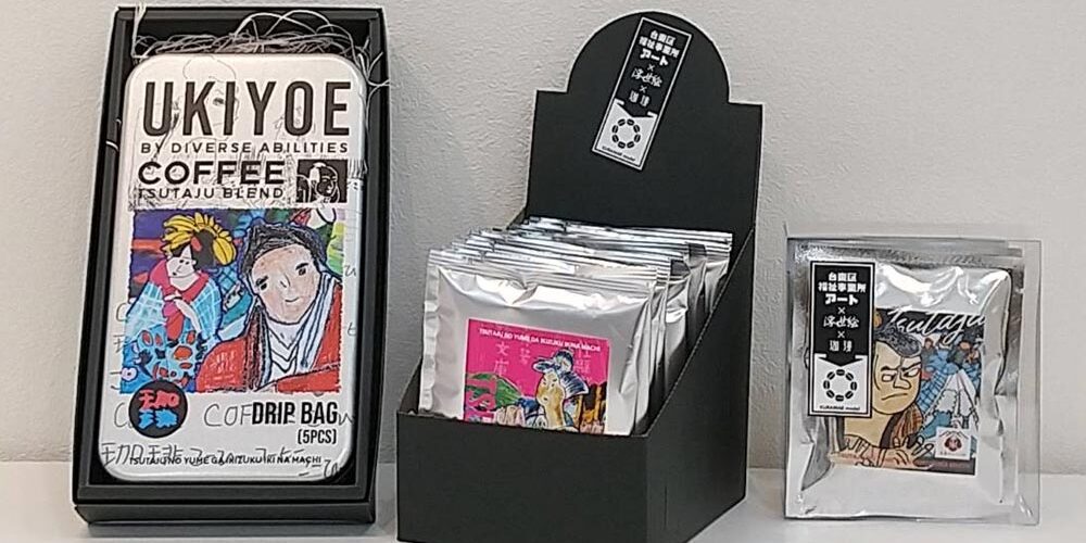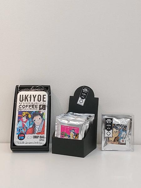 The “UKIYOE COFFEE” project revolves around a collaboration where welfare organisations reproduce classic ukiyo-e prints, and NODD transforms these reproductions into original illustrations for the coffee labels. En no Ki Corporation complements this effort by developing different coffee blends for each organisation.