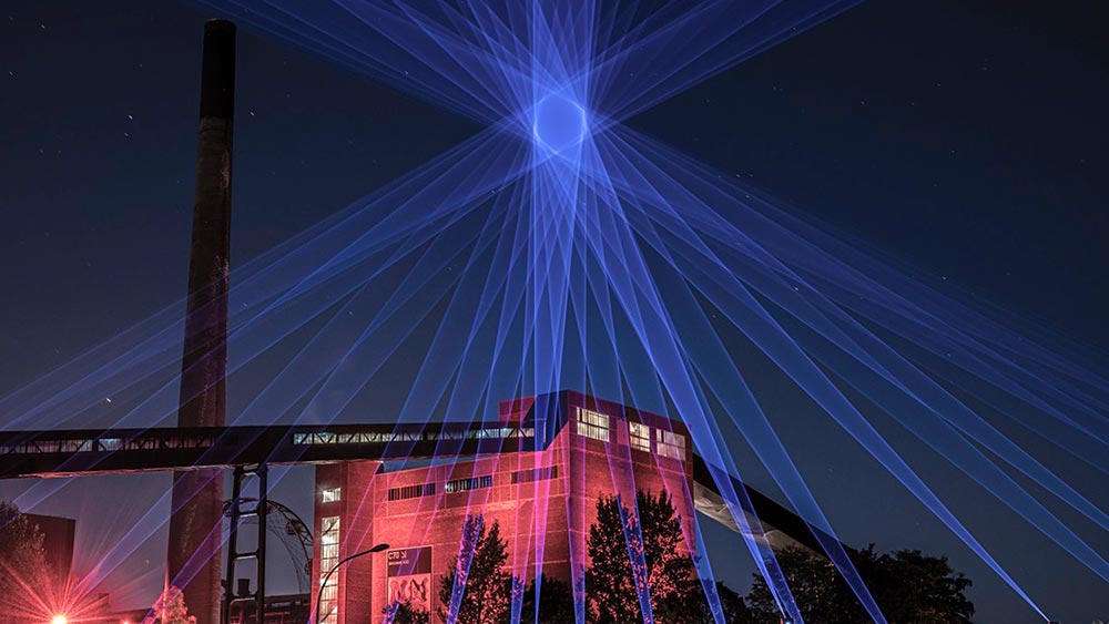 Another winning project is Another Moon, a large-scale outdoor apparition that creates a technically sublime second moon in the sky. This second moon is created by a cross-temporal reflection of sunlight gathered during the day, projected back into the sky at night. The moon appears overhead where laser beams tightly superimpose to create a three-dimensional form that can be viewed up to 1 km away.