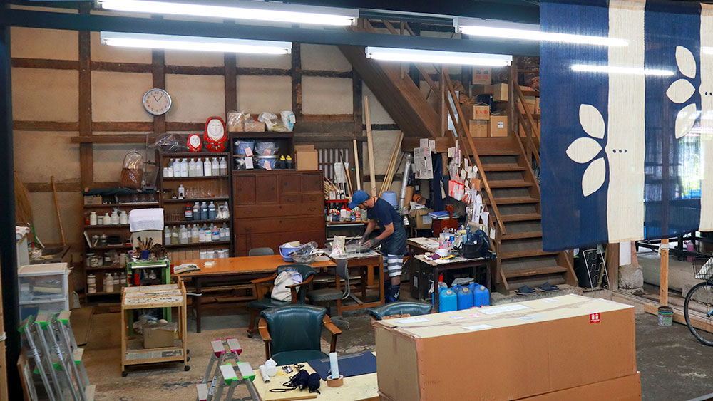 Somekai’s workshop has a historical background to it. The spacious building was once a place to create Japanese sake. When Tsujioka was looking for a place to practice his art 8 years ago, this place was listed on the online vacant housing directory. The requirement for usage, Taketa City hopes the building will be kept intact. Tsujioka saw no problem to the arrangement, and now uses it as both shop and workshop.