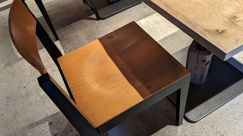Many may not realize, but some of the chairs are recycled from an old German school. You can still find the texture of nostalgia on them. (Image: Roger Ong)
