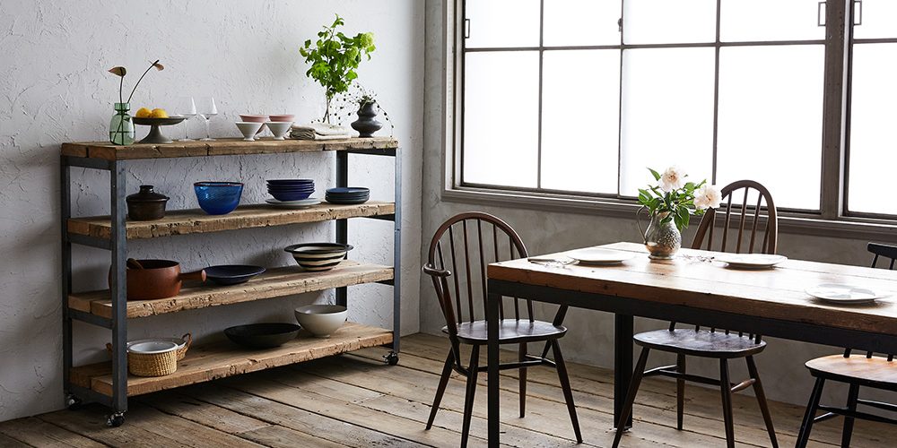 Hence emerged the brand “Setouchi Shipbuilding Furniture” that breathes life into these antique wood. The 50mm thick wood of old natural cedar with straight grain had a warm touch and a natural, pleasant scent. They were perfect for folding dining tables, working desks, shelves and benches. Furniture craftsmen then delicately crafted each item with their hands. Black leather iron with blue tint, which transforms with age, was selected to hold the wood pieces together, adding a modern touch.