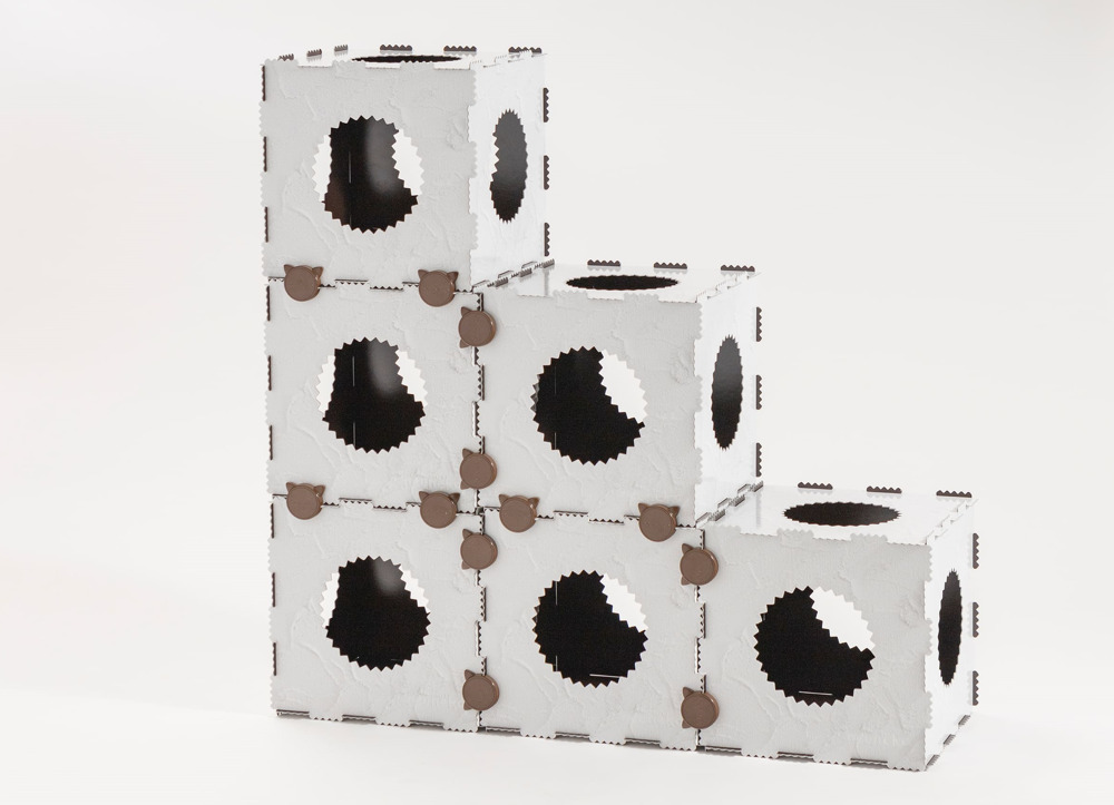 Neuneko BOXes connect with each other by original cat-shaped adjusters so that the owners can customize them according to the living space. The simple steps to assemble them are helpful for the builder. The boxes are designed with recycled cardboard paper, therefore, they are lightweight but sturdy.