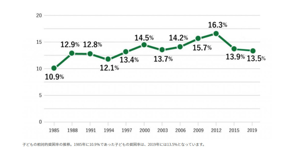 The monthly income for a single-parent household with one child comes to less than 140,000 yen. One in seven children live in relative poverty in Japan and the overall rate of child poverty has increased over the past thirty years.