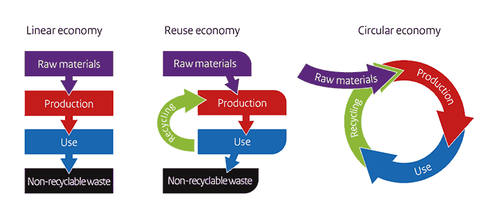 Nasu: “Till recently, we have been running on a Linear Economy of take-make-waste. Right now, we are in a Recycling Economy where the focus is mainly on recycling waste. Unfortunately, that only pertains to a portion of the things we use, and non-recyclable products are still becoming waste. A Circular Economy is the final form we want to arrive at, which eliminates the production of waste.”