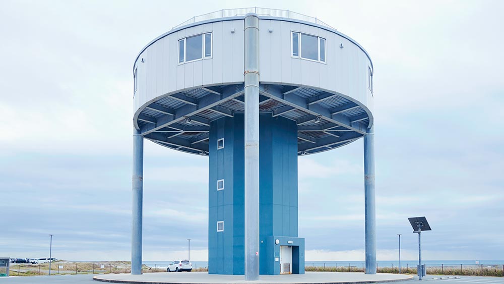 Designed to deflect tsunami debris, these cylindrical towers harmonise with their culturally significant surroundings. The first tower earned the Good Design Award in 2016 and serves as an observation deck during non-emergencies.