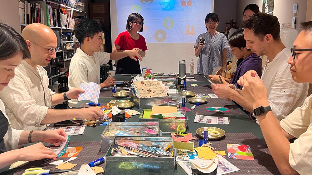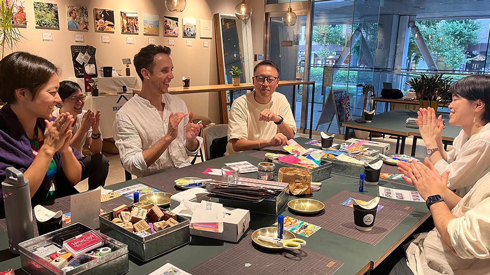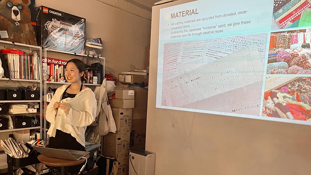 Next, Akari Yamaura from Rinne.bar led us in an upcycling crafting session. Rinne.bar combines crafting and drinking together as customers use materials received from various craftspeople to make their own creations. As she explain the message of zero-waste behind RInne.bar and how the flow of creation usually goes, Yamaura set the participants to creating cards using Japanese motifs of omamori (Japanese amulets). We saw how the participants opened up to chatting and making friends with one another, as they created creations with themes across time and seasons.