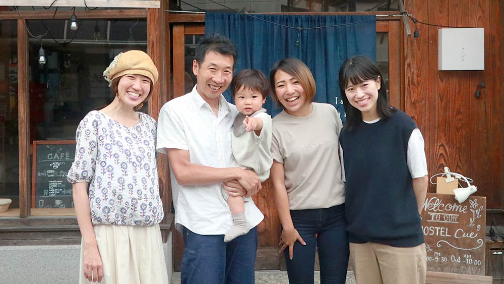 An old 80-year-old house became their destined foothold, as renovations began with its conversion into the now Hostel Cue. Now, Taketa Ekimae Hostel Cue has two additional members, Rika and Mari. Rika too loved to travel and was in the Regional Development Cooperation Team together with the Horiba couple. It seemed like a good match of interest and timing. Mari was born in the Taketa region, and it was a chance meeting that Mari came to cue. Mari happened to be visiting with a friend who planned to stay at cue, and learned that cue was recruiting. She then became a member of Hostel Cue.