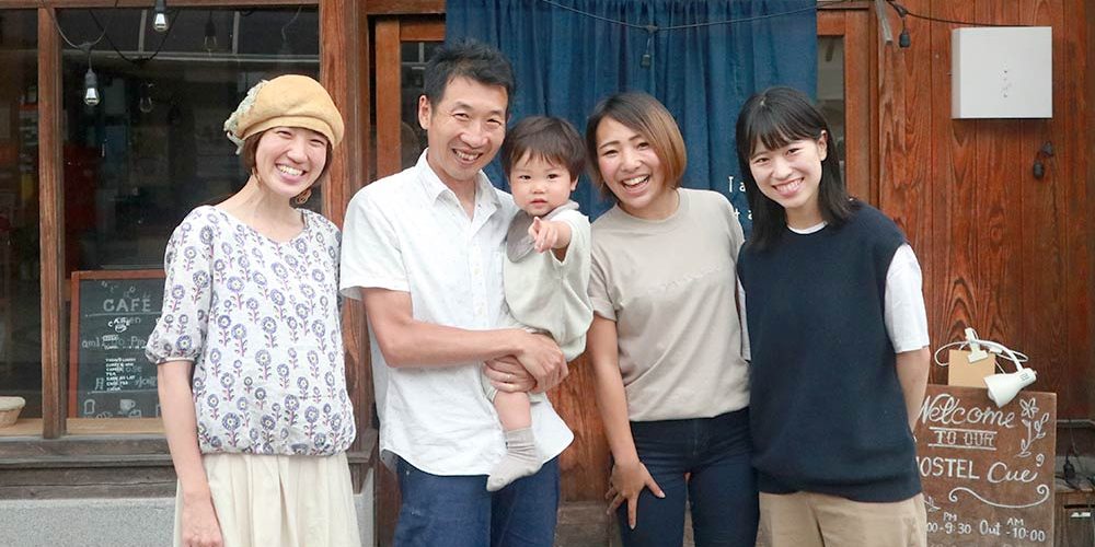 An old 80-year-old house became their destined foothold, as renovations began with its conversion into the now Hostel Cue. Now, Taketa Ekimae Hostel Cue has two additional members, Rika and Mari. Rika too loved to travel and was in the Regional Development Cooperation Team together with the Horiba couple. It seemed like a good match of interest and timing. Mari was born in the Taketa region, and it was a chance meeting that Mari came to cue. Mari happened to be visiting with a friend who planned to stay at cue, and learned that cue was recruiting. She then became a member of Hostel Cue.