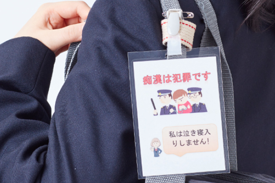 Schoolgirls are often the targets of chikan. One female student was a victim of chikan every day once she started high school. She was so scared that she couldn’t even speak up and once went to school crying. Following the guidance of the police, she gathered her courage and raised her voice. However, no one around her would help her. Through trial and error, she and her mother made a “Chikan Deterrent Card” and attached it to her bag. As a result, she was never molested again after wearing this card.