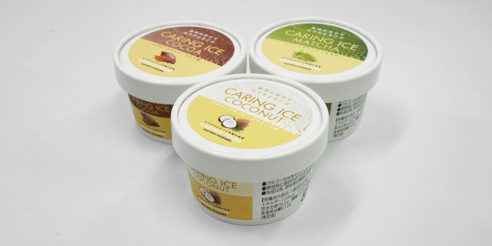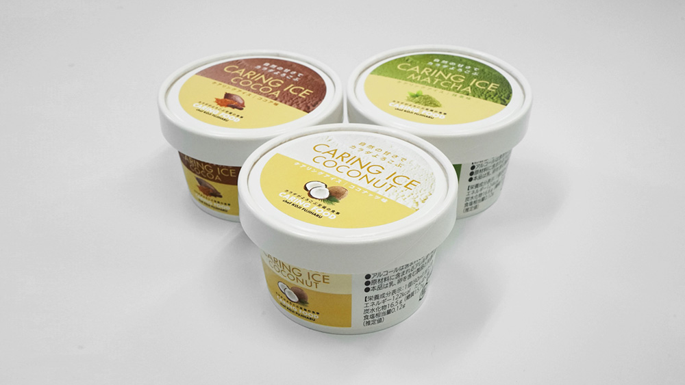 Caring Ice went on sale on February 5 at Queens Isetan supermarkets, with sales to be extended throughout Japan after that. It comes in the three flavors of coconut, cocoa and matcha green tea.