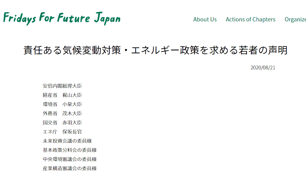 Fridays for Future Japan released a statement last Friday, calling for the Japan government to take charge of developing responsible policies. Beyond the reminder that Japan has to act now to meet the climate crisis full on, FFF Japan also urges involving diversity in policy making.