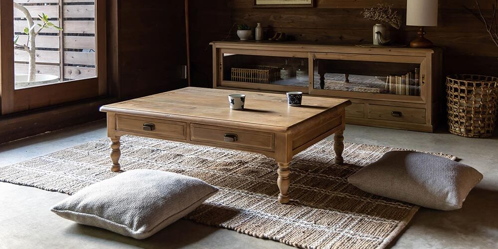 Traditional Japanese furniture harks back to an era around the Meiji and Taisho periods, slightly before the Showa era, when floor-based lifestyles were mainstream. Furniture of that period boasts a low-rise, flat design with simplicity at its heart, a style that the second installment embraces.