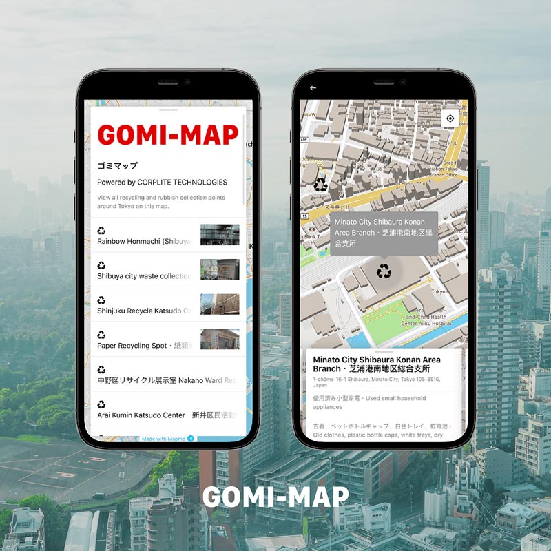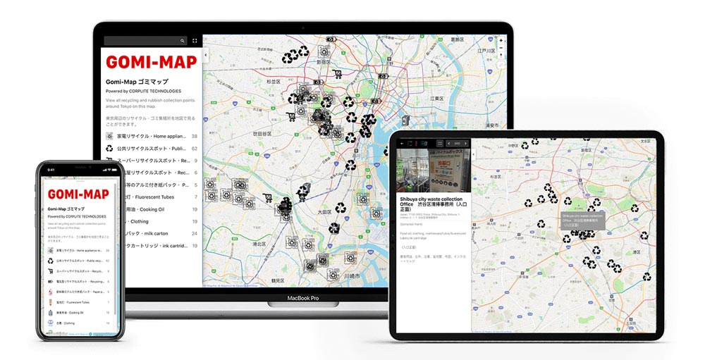 GOMI-MAP is a new web app for users to find out where to dispose of their waste in Japan. It uses data and technology to deliver accurate location and carbon emission information for waste disposal in Japan. You can find locations to recycle home appliances, dispose of batteries safely, or use the app to discover proper places that can manage your used ink cartridges. Not sure what to do with milk cartons or tempura oil? GOMI-MAP also has you covered!