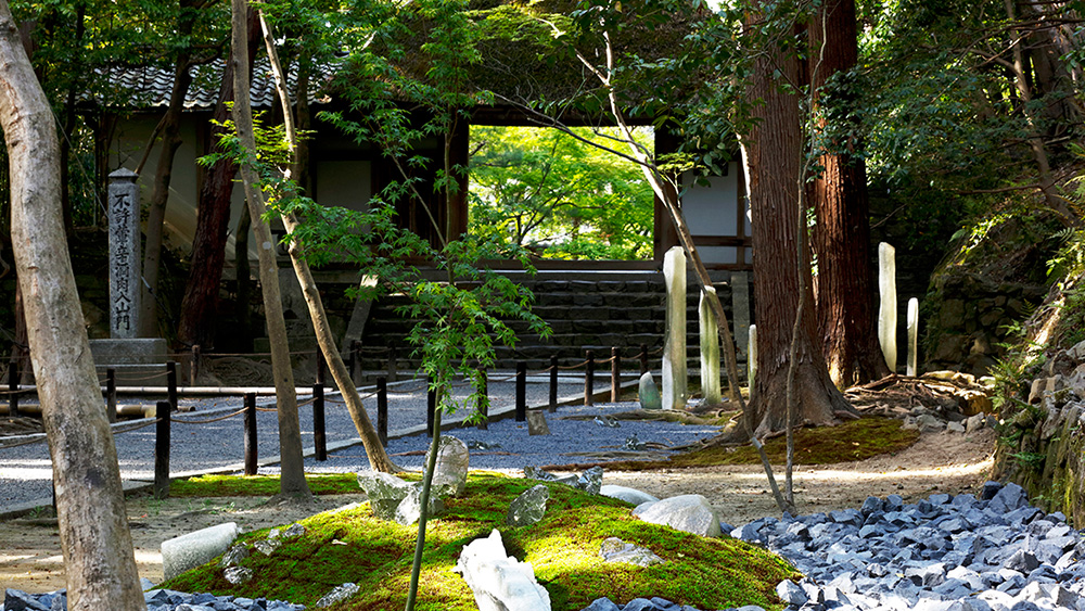 Honen-in Temple, which is just off the famous Philosopher’s Path, is about 340 years old and known for its simple beauty, rustic thatched-roof temple gate and white sand gardens.