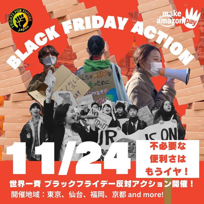 In response to Amazon Japan’s Black Friday event tomorrow, November 24, Fridays For Future Japan Climate Justice Project will conduct demonstrations to challenge the environmental and social impacts of the retail giant’s practices. These protests, organized across various Japanese cities, including Sendai, Tokyo, Fukuoka, and Kyoto, aim to draw attention to the negative consequences of mass consumerism and Amazon’s role in it.