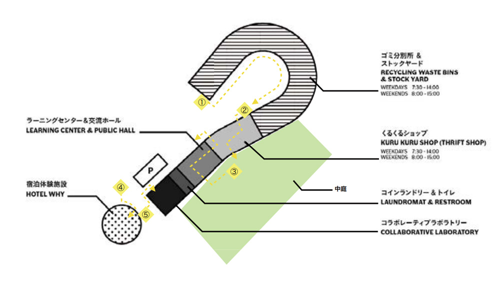 It is therefore not a coincidence that Kamikatsu’s Zero Waste Center is named “WHY”. It reminds us to keep questioning: Why do we buy things? Why do we use them? Why do we throw them? Why do we (as a business) sell things? The question mark structure of the center is a deliberate decision to support this mindset.