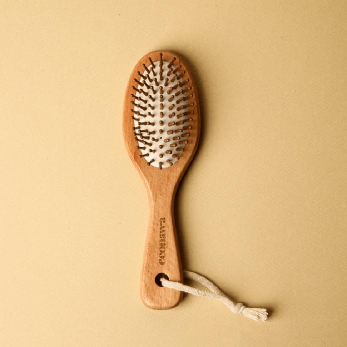 Their environmentally friendly hairbrush keeps your skin and hair healthy. The handle is made of beech wood and is easy to grip. The pins made of bamboo have round tips, which help keep the scalp healthy. Furthermore, the base cushion made of natural rubber provides a comfortable massaging effect.