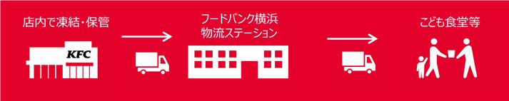 This project materialized after KFC and a nonprofit organization ‘Food Bank Yokohama’ built a scheme to secure the safety of sharing precooked food. KFC will freeze and store left over food at stores and provide them to Food Bank Yokohama when the NPO requests for provision. Food Bank Yokohama will then deliver them to Children’s Cafeterias within Yokohama city. Each cafeteria will then defrost and cook the food as needed (bones will be removed from original chicken for safety) at their responsibility. Because each of the organization checks and observes the safety criteria at each phase, every meal will be provided safely.
