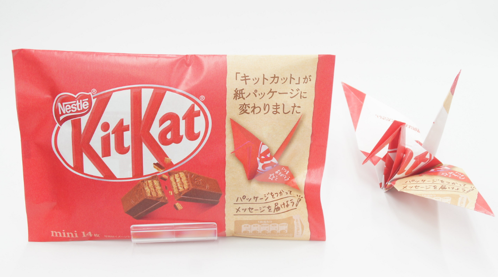 Nestlé group announced in 2018 that the company will commit to switching all its packaging to recyclable or reusable material by 2025 to reduce plastic production and waste. Therefore KitKat Japan, operated by Nestlé Japan, has already started changing part of their products packaging from plastic to paper since 2019. This conversion is estimated to reduce approximately 380 tons of plastic each year. The company aims to change every KitKat packaging to recyclable or reusable material by 2022, in order to reduce generating plastic waste.