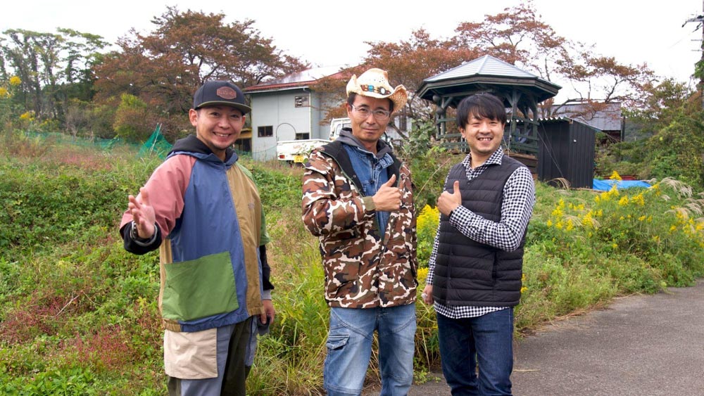 From left to right: Genki Kitamura, Masaru Yura, and Yutaro Iida, Kannabe local business owners and the three masterminds behind the “Forest Restaurant” tour.