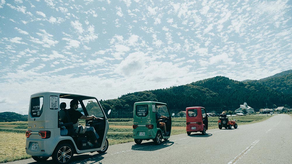 Touring farms and other places on EV Tuk-tuks in part of new sustainability-focused local experience series in Toyooka, Hyogo.