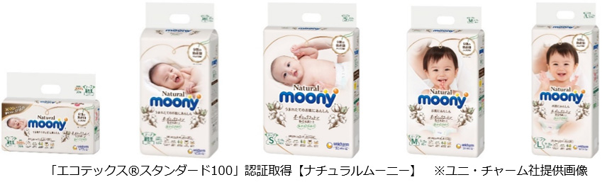 Natural Moony, by Unicharm Corporation, announced that it is the first baby diaper brand in Japan to be awarded the OEKO-TEX for “STANDARD 100 by OKEO-TEX”, certified by Nisseken Quality Evaluation Center.