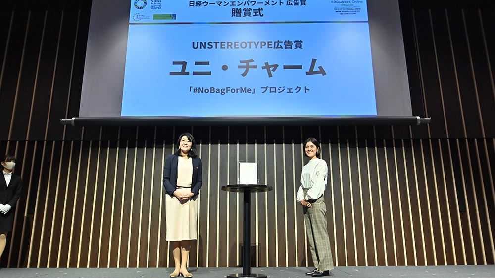 Unstereotype Alliance is an initiative convened by UN Women— the United Nations entity for Gender Equality—to eradicate negative gender-based stereotypes in all media and advertising content. Expressing support for their effort, Japan’s largest financial newspaper Nikkei Inc., a founding member of Unstereotype Alliance Japan Chapter, established the Nikkei Unstereotype Award. On this occasion, selected Unicharm’s “#NoBagForMe PROJECT 2019-2020” as their first winner. UN Women congratulated Unicharm for winning the award.