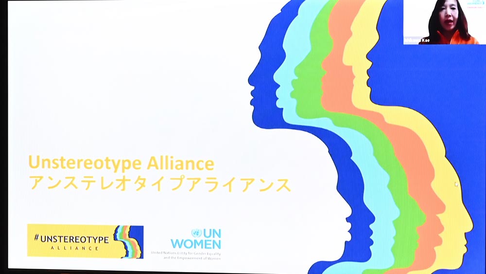 Kae Ishikawa, Director of UN Women Japan Liaison Office, said in a video message, “The spread of the COVID-19 pandemic is severely affecting women and girls around the world, including Japan. That is why it is important for companies to encourage society through their advertising and communications, to challenge negative gender stereotypes like ‘women/men should be like this,’ and instead recommend a positive take on gender.”