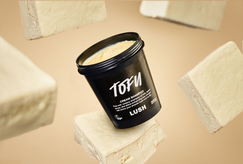 The cream shampoo Vegan Protein, released by LUSH, contains approximately 20% handmade firm tofu produced in Minakami Town, Gunma Prefecture. The tofu, crafted with mineral-rich spring water nurtured by majestic mountains, achieves a creamy and smooth shampoo texture. It gently cleanses various hair types, preventing split ends and breakage while imparting a natural shine to the hair.