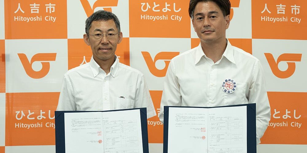 Hitoyoshi City in Kumamoto Prefecture has signed an agreement with the Japan Saiteki Eiyo Food Association to ensure a stable supply of nutritionally balanced meals for residents in the event of a disaster. The formal pact was signed at Hitoyoshi City Hall on 29 June 2025.