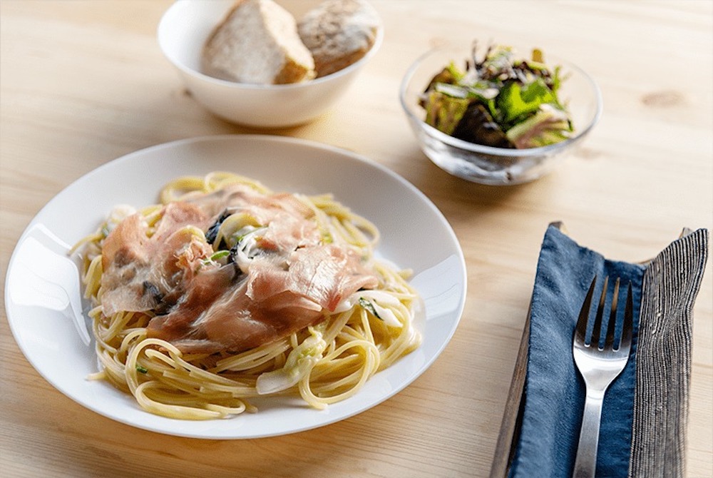 Opened in 2004, Organic Vegetable Café Warashibe is run by a husband-and-wife team, with the husband making pasta and the wife baking bread and homemade yeast sweets. All the vegetables they serve are locally sourced and organic. The pasta is also organic, and the bread is made from carefully selected domestic wheat.