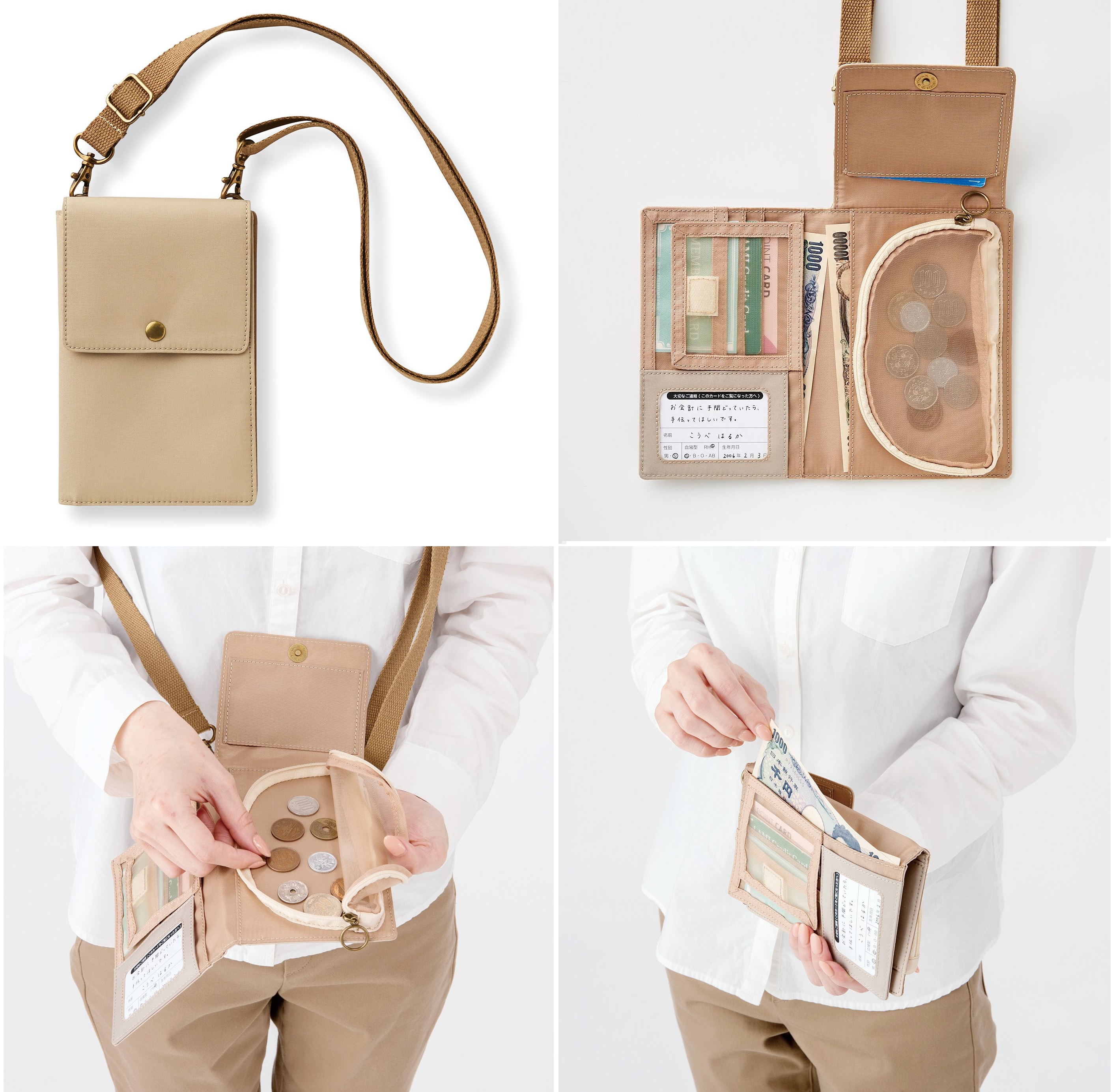The survey also revealed the most difficult things to do at the cash register is recognizing the different kinds of coins, and getting them in and out of a wallet. This satchel wallet was invented to solve these problems. The mesh fabric of the coin pouch makes all the contents easily visible, and the zipper opens the front cover 180 degrees, so finding the correct coins is simple and stress-free. Two slots for paper money are built in to sort bills and make them easily accessible because the wallet can be folded outwards.