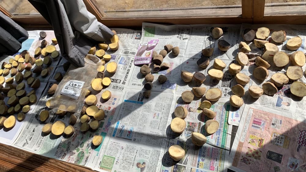 Drying potatoes for planting. (Image: Sonoka Imagawa)