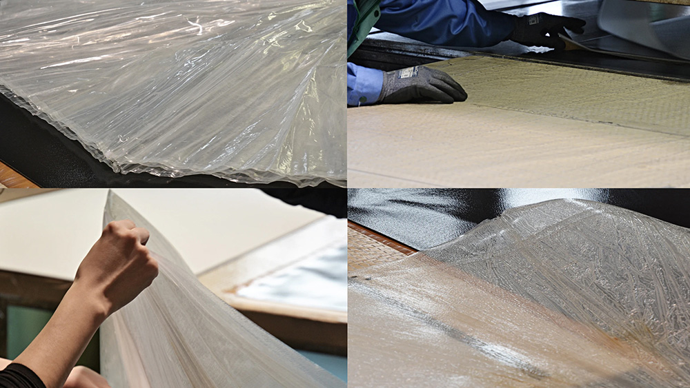 The surface of both products comes from PLASTICITY’s recycled vinyl material. Plastic umbrellas are disassembled, and its vinyl is pressed and layered into a reusable material. The inner surface of the ixc.PLASTICITY pouch is made exclusively from excess interior textiles by Cassina ixc.’s furniture making.