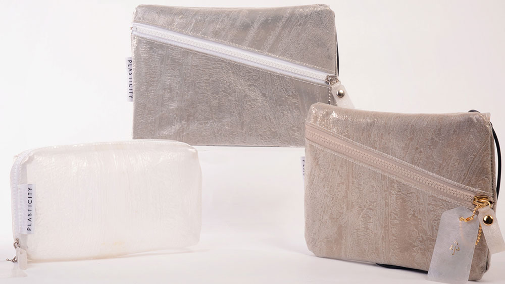 PLASTICITY is a new sustainable brand that sells bags made from disposed and unwanted plastic umbrellas. The brand name ‘plastic’ represents the world’s plastic problem that the team wants to solve, and ‘city’ refers to the focus of the brand. PLASTICITY takes the vinyl material of plastic umbrellas and upcycles them into a new material using original technology developed by their company.