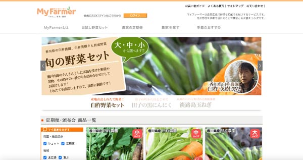 A delivery service that allows users to purchase safe items produced by farmers who avoid using unnecessary pesticides and chemical fertilizers. If you find a farmer you want to support, you can favorite them as a “personal farmer,” allowing you to receive messages from them on a regular basis.