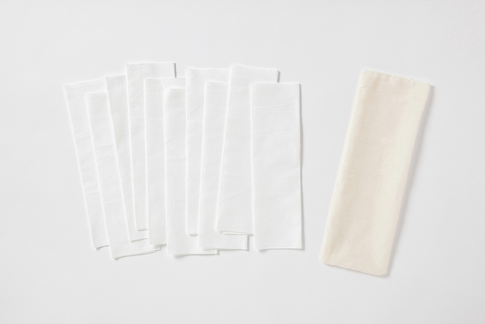 - 10 pieces of non-woven cloths that can be used to make face masks using the elastic bands that come in the kit. They can also be folded to use as a pantie liner or sanitary napkin.