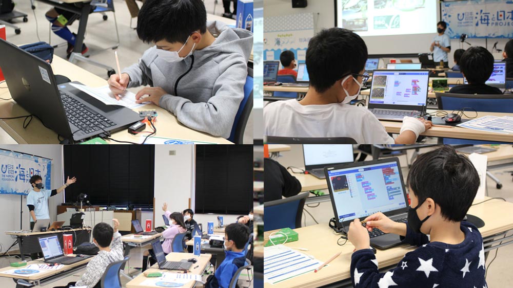 As part of the Nippon Foundation’s “Sea and Japan Project,” elementary school students participated in the “Programming Sea SDGs!” program at the Kagoshima Museum of the Environment. The students learned programming while thinking about the importance of marine life and marine concerns, mainly through marine plastic waste survey and sustainable fishing.