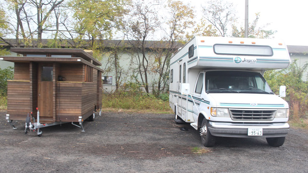 Landcamp plans to rent out camping vans to long-term visitors to Mima based on the idea that placing one on available land creates a mobile lodging. The van’s outer appearance will be used as a mobile advertisement for the Landcamp service.