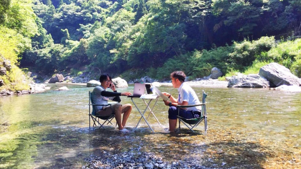 Shibata is even turning the riverside into a workspace. Put a table in the river and open your laptop and you can hold meetings as you soak your feet in the water.