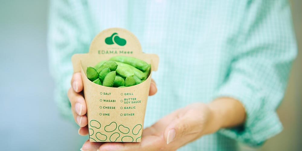 More than a mere evolution of taste, the shop’s approach is transformative in how it presents edamame as a walking snack. Drawing inspiration from the globally recognized french fry packets, edamame is served in paper containers with partitions. These distinctively designed containers not only prioritize ease of consumption but also sustainability, providing a designated compartment for discarded pods.