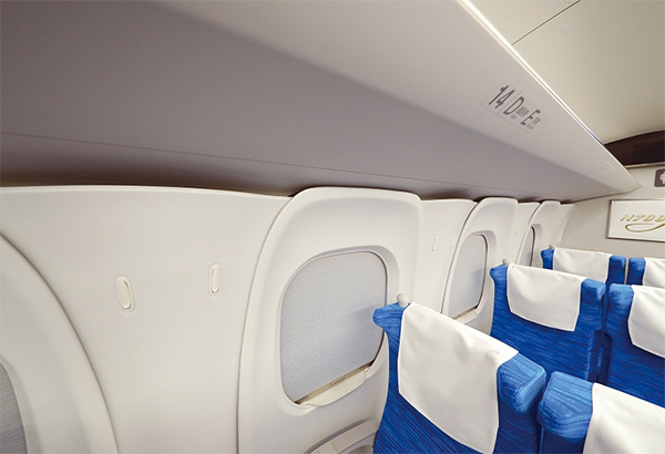 The luggage racks located above the seats of the new bullet trains. (Image: harita.co.jp)