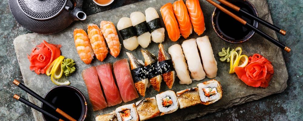 Sushi is a Japanese dish that typically consists of vinegar rice, often and topped with various ingredients. They often include raw or cooked seafood, but there are variations with other ingredients like egg and vegetables. The ingredients are often wrapped in dried seaweed, cut, and served in bite-sized portions. Sushi is commonly associated with Japanese cuisine, and has become popular worldwide with many different styles. Sushi is often served with soy sauce, wasabi, and pickled ginger, and can be enjoyed as a snack, a meal, or a special occasion dish. The art of sushi-making has a long and rich history, and is considered a highly skilled culinary art form. Even among the population, it is a beloved part of Japan’s food culture.